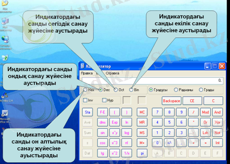 Іске қосу: Пуск⇨Программы⇨Стандартные⇨Калькулятор.